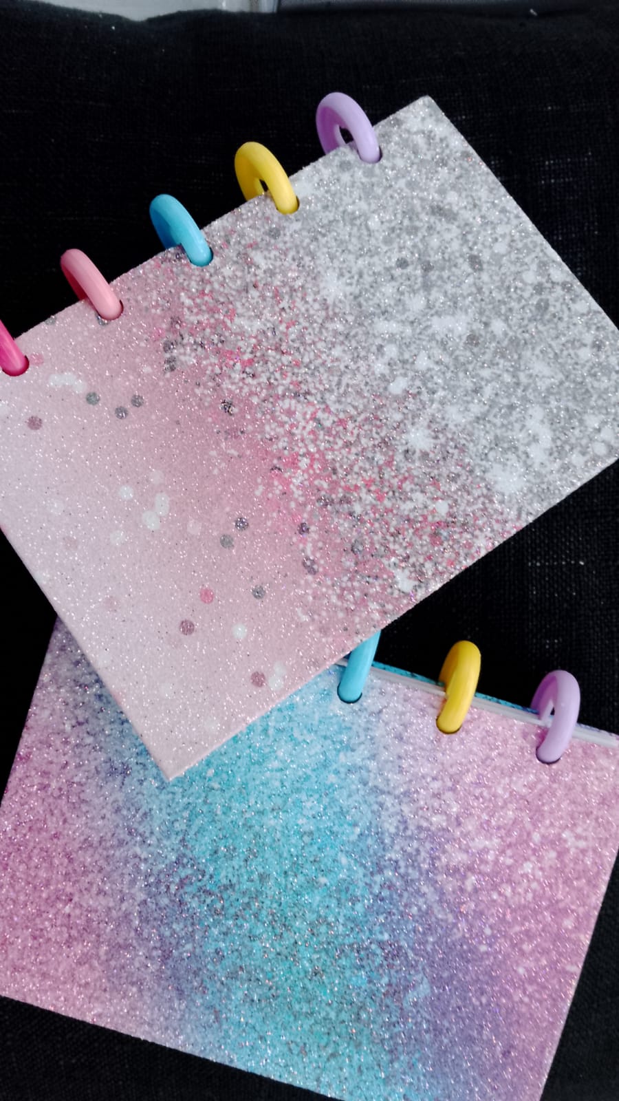 Com 80 folhas, esta agenda oferece amplo espaco para anotacoes, planejamento e registro de ideias. Sua capa dura garante durabilidade e protecao, enquanto o design em glitter adiciona um toque de sofisticacao ao seu dia a dia.