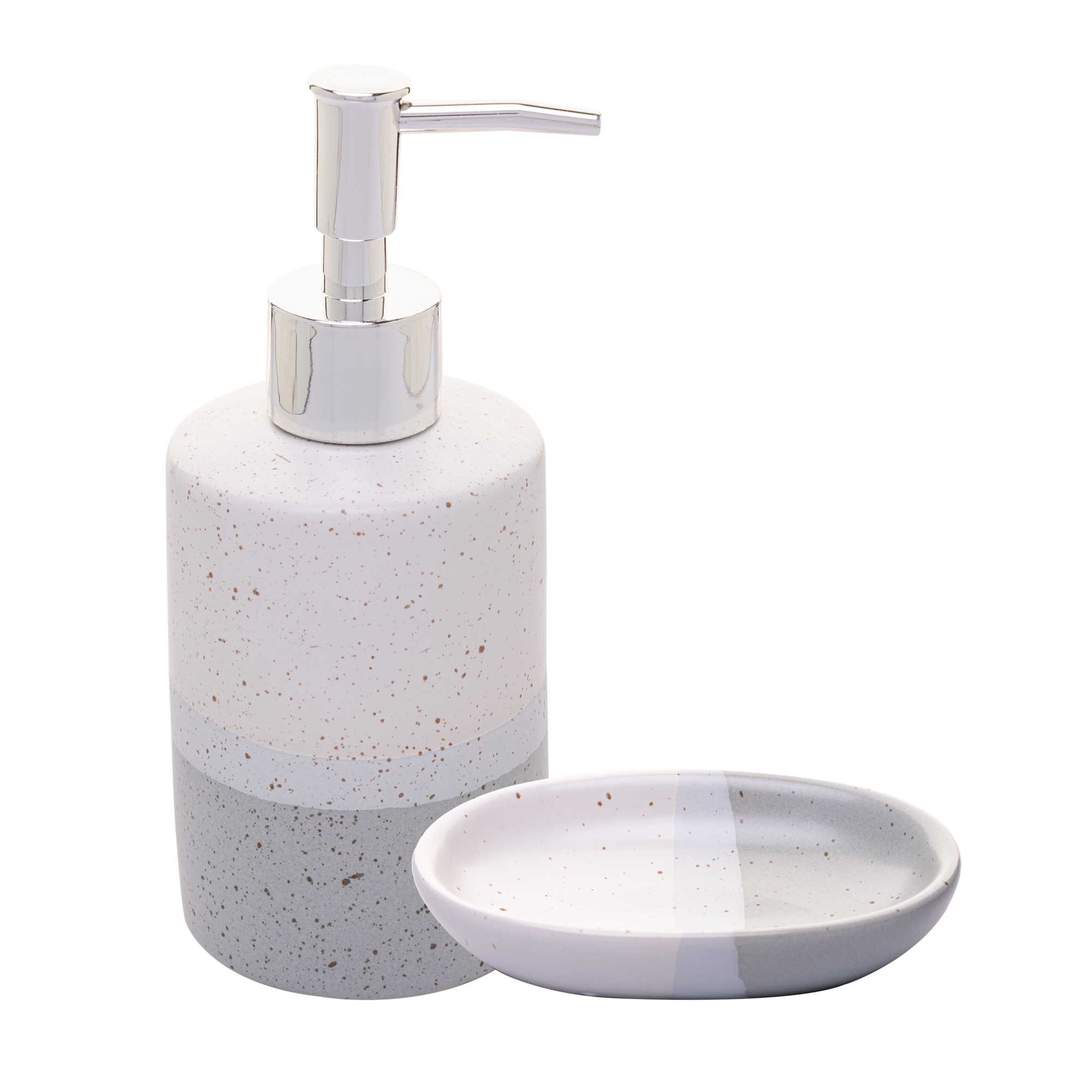 Atualize o visual do seu banheiro com o Conjunto 2 Peças para Banheiro de Cerâmica Degradê Cinza da Lyor, combinando estilo e funcionalidade.