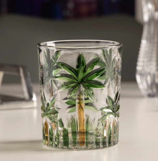 Copo Baixo Palm Tree Handpaint 340ml Cristal Ecológico - Wolff