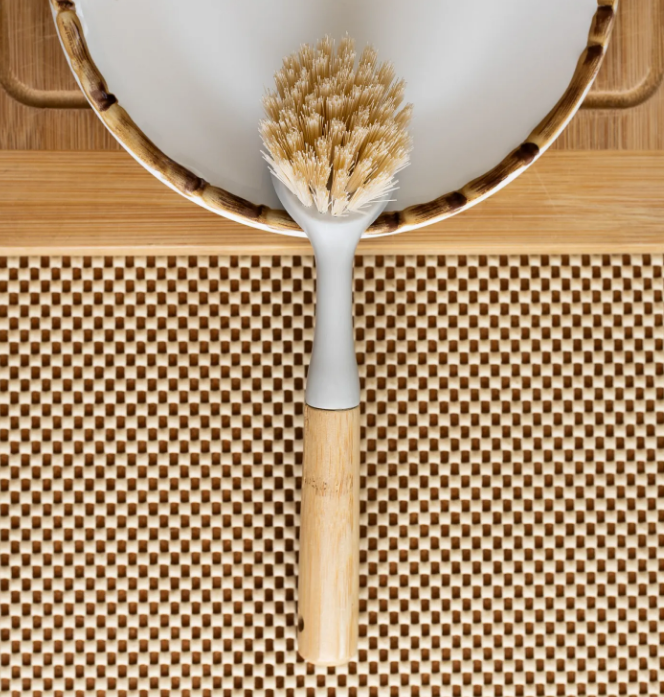 A escova possui cerdas eficientes e duráveis, juntamente com um cabo de bambu, proporcionando uma alternativa sustentável para suas necessidades de limpeza.