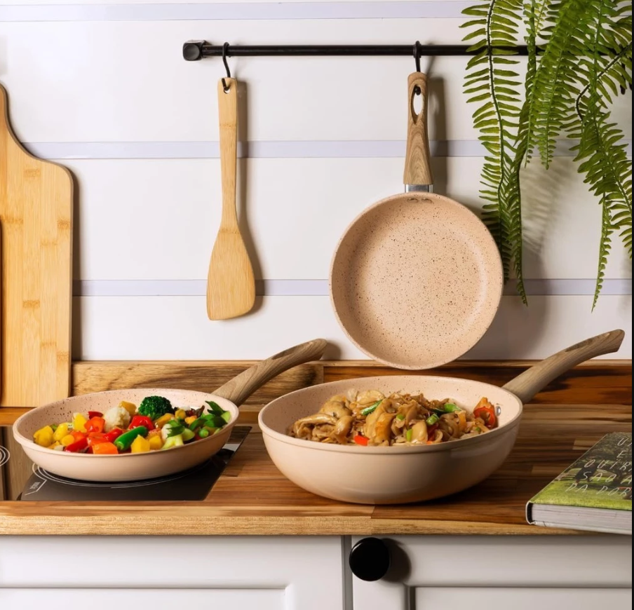 Frigideira de Indução Antiaderente Cerâmica Granilite 20cm Alimentação mais saudável e praticidade na cozinha. Prepare alimentos usando pouco óleo ou azeite. Compatível com todo tipo de fogão: Indução, gás, Cerâmico. Base em alumínio reforçado abrangendo todo o fundo. Proporciona a perfeita distribuição de calor, evitando pontos quentes e queimando alimentos. O revestimento em granilite possui alto poder antiaderente, para que seus alimentos não grudem nada no fundo! São 5 camadas antiaderente, projetada para preparar alimentos de forma prática sem sujeira. Fabricada em alumínio de alta durabilidade, feita para DURAR. Cabo antitérmico em baquelite com toque macio e design de madeira. Características: Tamanho: diâmetro 20cm Material: Corpo: Alumínio, Granilite Cabo: Baquelite Peso: 400 gramas