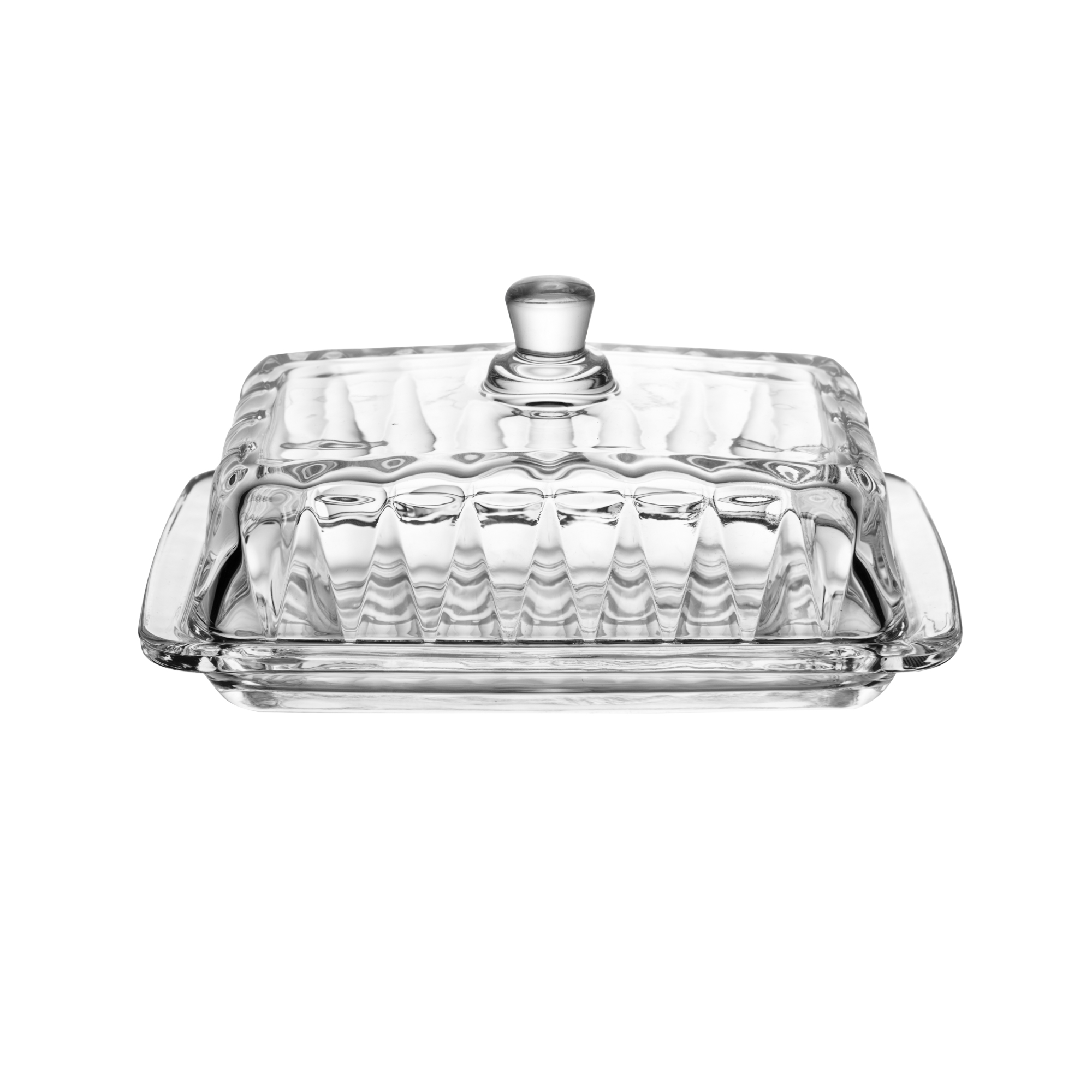 Manteigueira de Cristal com Tampa Radial 18cm x 10,5cm x 8cm - Lyor