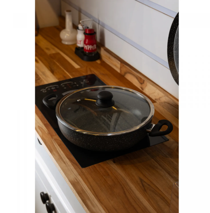 Wok de Indução com Tampa de Vidro 28cm Granilite Cinza Alumínio com Revestimento Cerâmico - Wolff