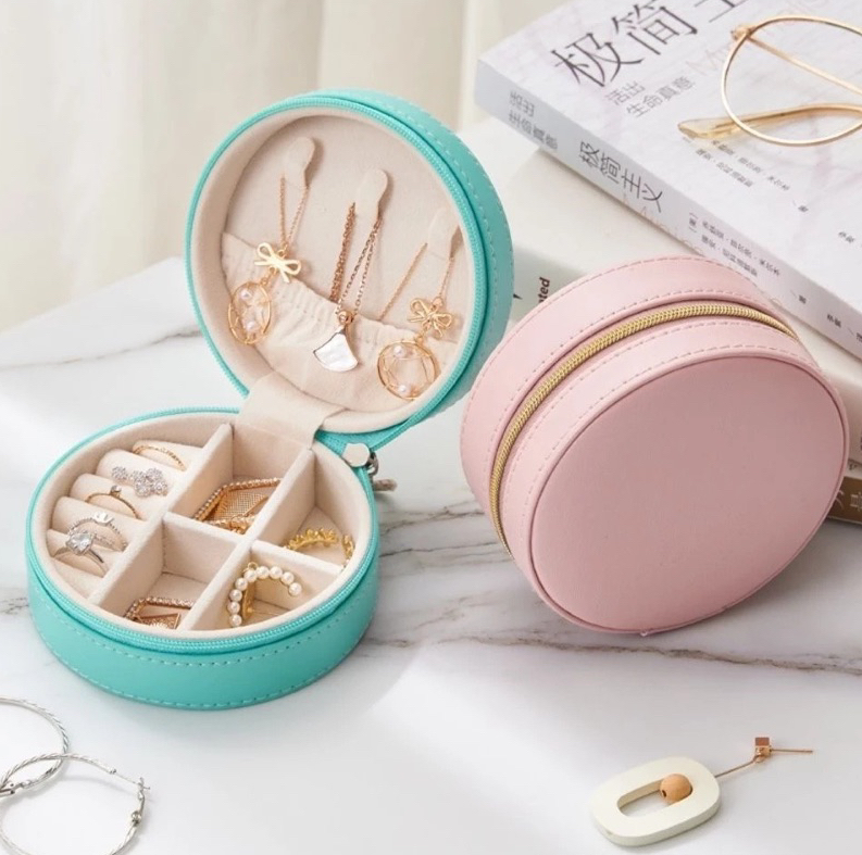 Descrição Mini porta joias revestido de couro sintético, Tamanho:10.5*5cm Ideal para carregar na mala/bolsa de viagem, não ocupa espaço. Ele acomoda suas joias, colares, anéis, pulseiras, brincos etc… Muito útil para carregar em todos os lugares.