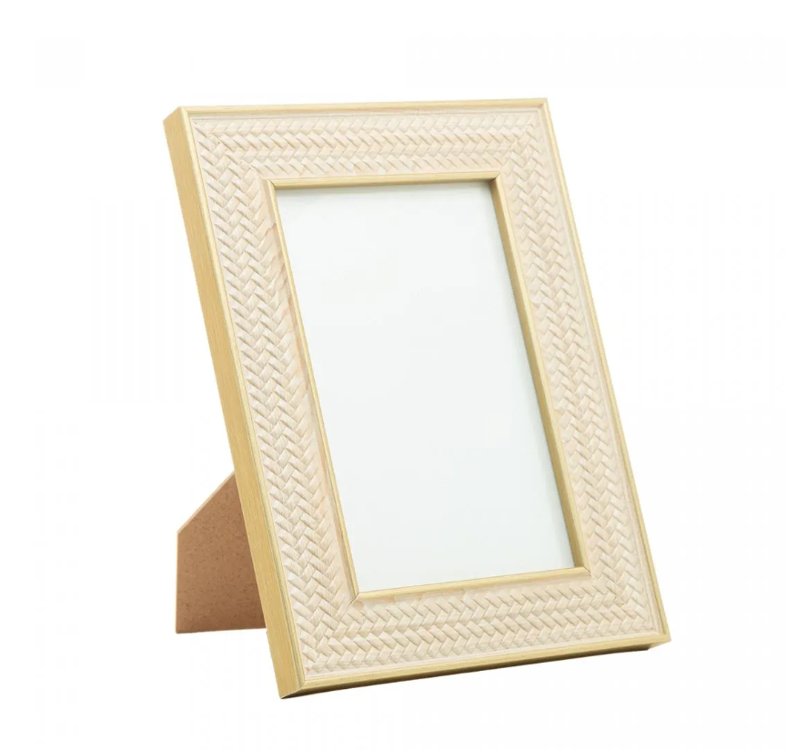 A textura texturizada e a tonalidade neutra do porta-retrato possibilitam a integração fácil a diferentes estilos de decoração, sendo um destaque em estantes, mesas ou paredes.