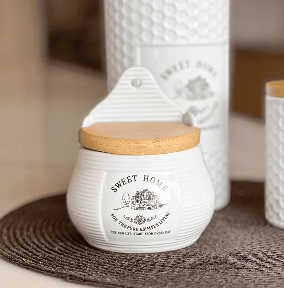 Transforme sua cozinha com o Saleiro de Parede de Cerâmica com Tampa de Bambu Lyor - Sweet Home!